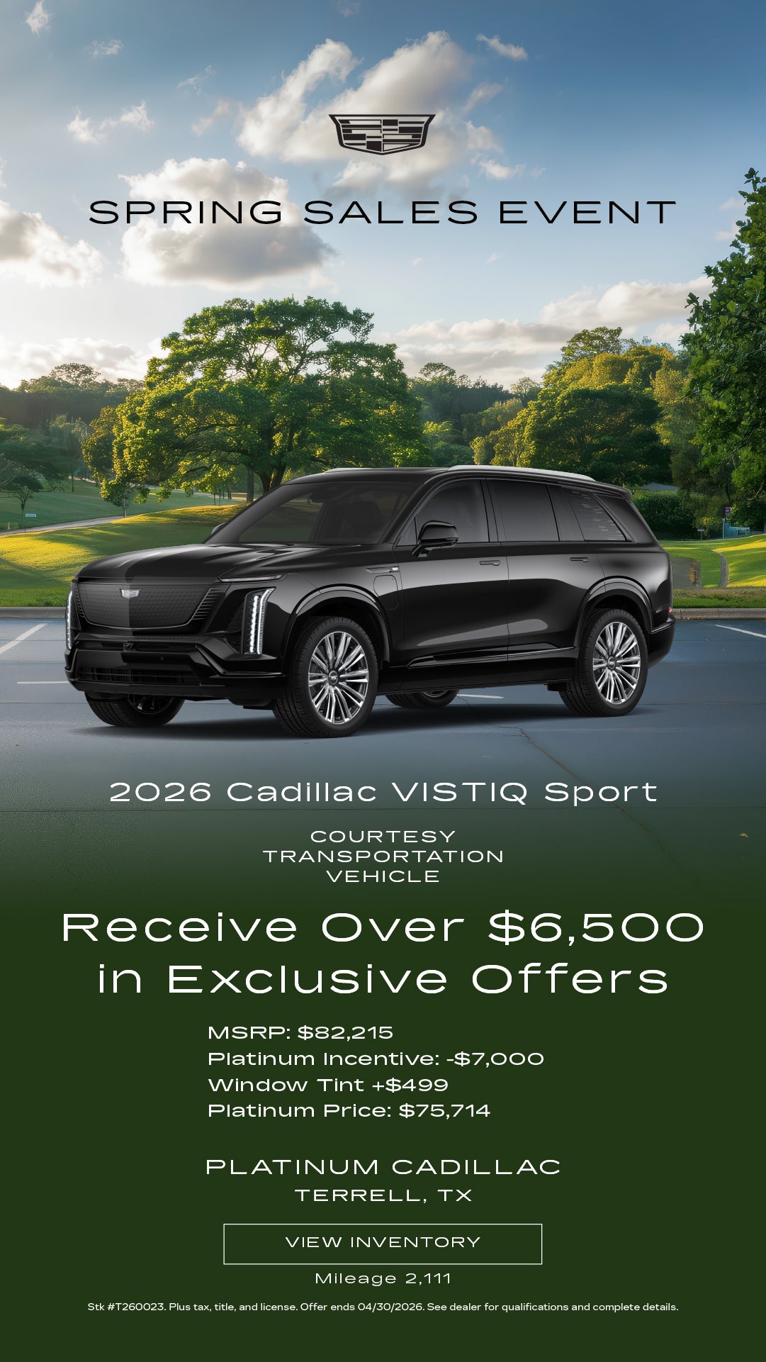 Save $6,500 on this 2026 Cadillac VISTIQ Sport!