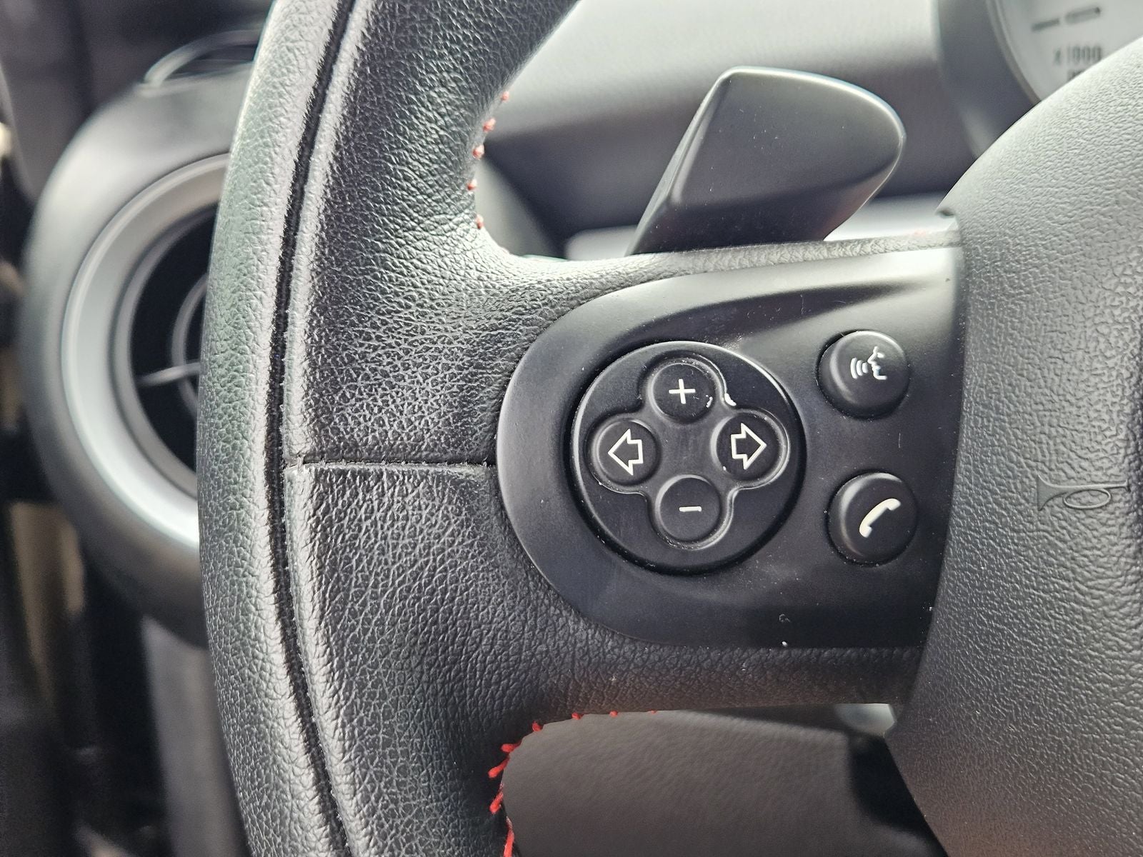 Leather-wrapped steering wheel with controls