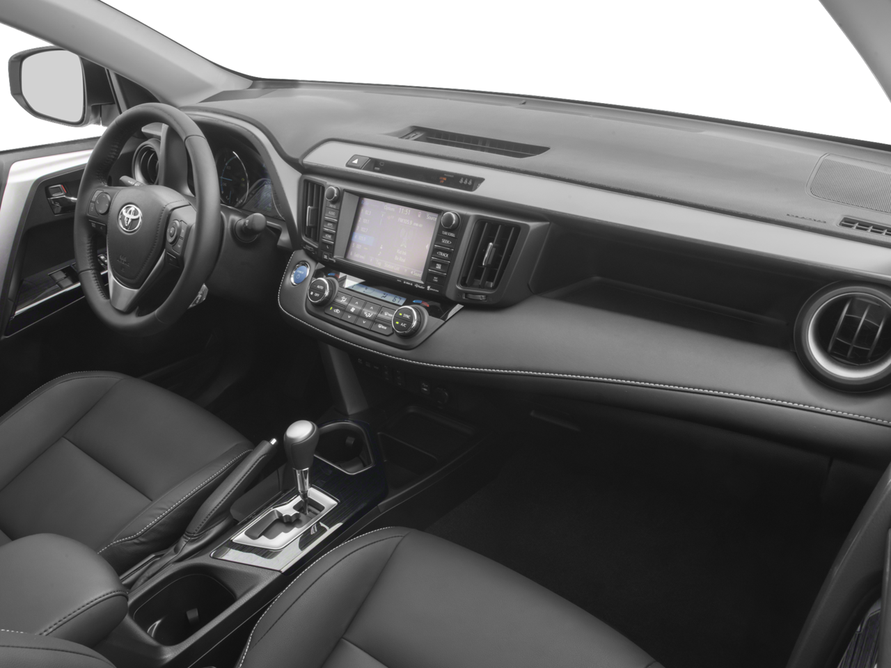 This 2017 Toyota RAV4 Hybrid Limited comes nicely equipped with the following 4-Wheel Disc Brakes, 6 Speakers, ABS brakes, Air Conditioning, Alloy wheels, AM/FM radio: SiriusXM, Auto High-beam Headlights, Auto-dimming Rear-View mirror, Automatic temperature control, Axle Ratio: 3.542, Brake assist, Bumpers: body-color, Chrome wheels, Compass, Driver door bin, Driver vanity mirror, Dual front impact airbags, Dual front side impact airbags, Electronic Stability Control, Exterior Parking Camera Rear, Four wheel independent suspension, Front anti-roll bar, Front Bucket Seats, Front Center Armrest, Front dual zone A/C, Front fog lights, Front reading lights, Fully automatic headlights, Garage door transmitter: HomeLink, Heated door mirrors, Heated front seats, Heated Front Sport Seats, Illuminated entry, Knee airbag, Leather Shift Knob, Leather steering wheel, Low tire pressure warning, Memory seat, Navigation System, Occupant sensing airbag, Outside temperature display, Overhead airbag, Overhead console, Panic alarm, Passenger door bin, Passenger vanity mirror, Power door mirrors, Power driver seat, Power Liftgate, Power moonroof, Power steering, Power windows, Radio data system, Radio: Entune Premium Audio with Navigation, Rear anti-roll bar, Rear seat center armrest, Rear window defroster, Rear window wiper, Remote keyless entry, Roof rack, SofTex Seat Trim, Speed control, Speed-sensing steering, Split folding rear seat, Spoiler, Steering wheel mounted audio controls, Telescoping steering wheel, Tilt steering wheel, Traction control, Trip computer, Turn signal indicator mirrors, Variably intermittent wipers, and Wheels: 18 x 7.5J 5-Spoke Superchrome Alloy. 34/30 City/Highway MPG