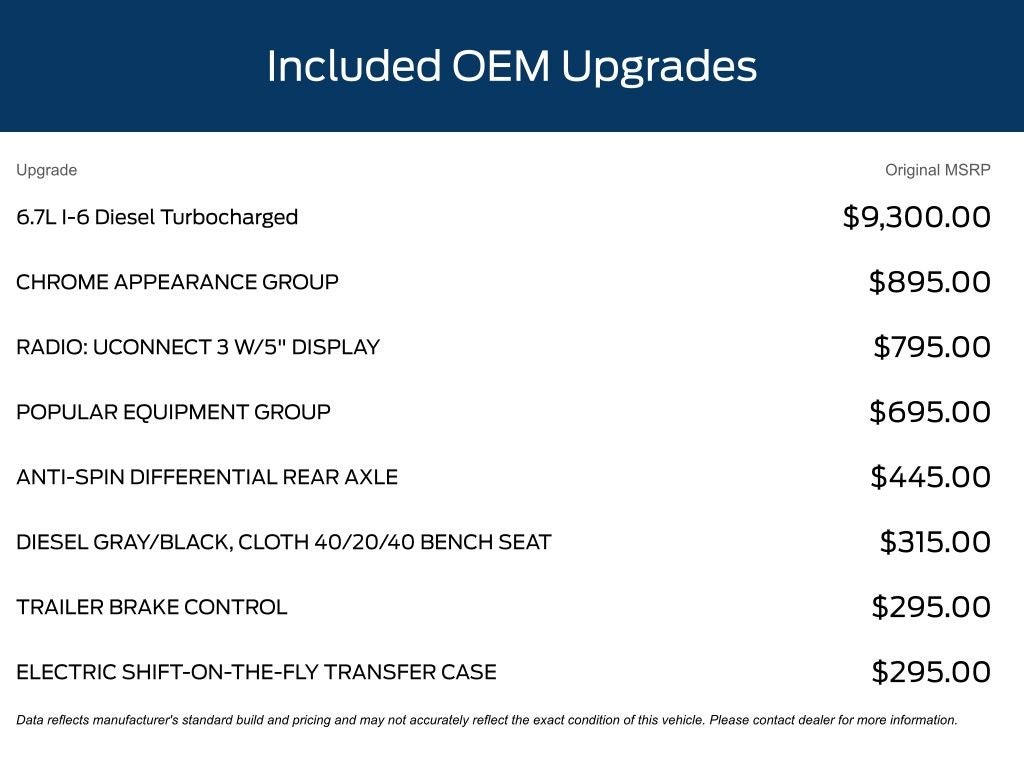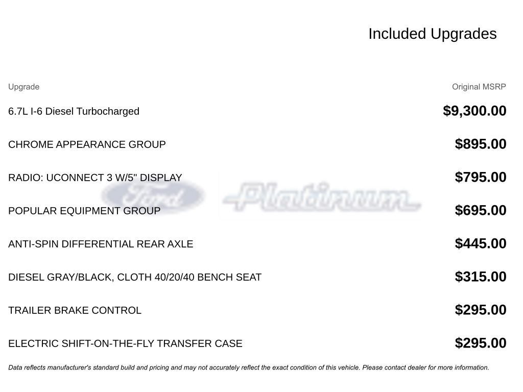 - Cummins 6.7L I6 Turbodiesel engine