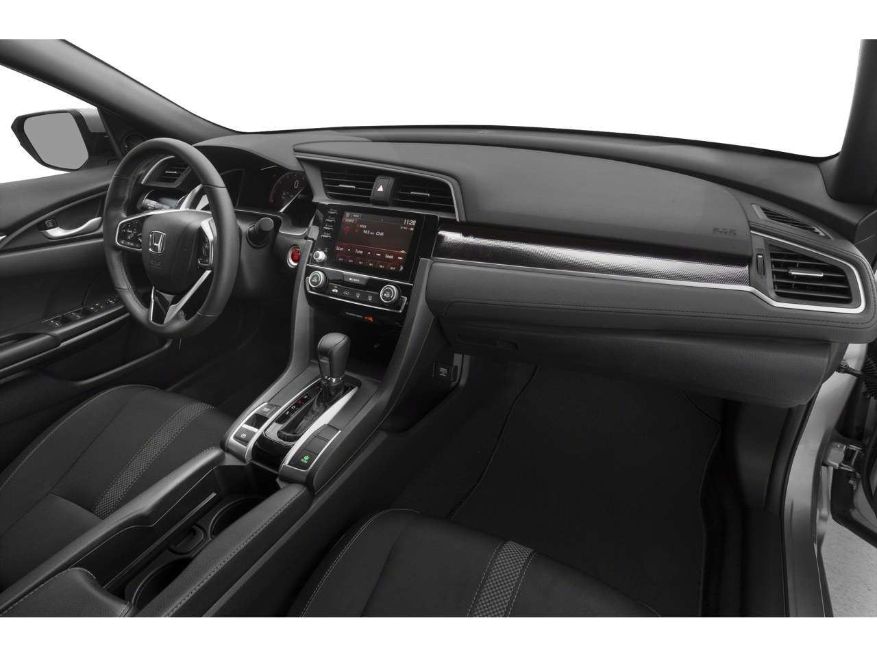 The Civic Sport's interior is equally impressive, with premium cloth seating, a leather-wrapped shift knob, and a host of advanced technology features. Stay connected with the 180-Watt AM/FM audio system, complete with 8 speakers, and enjoy the convenience of steering wheel-mounted audio controls.
