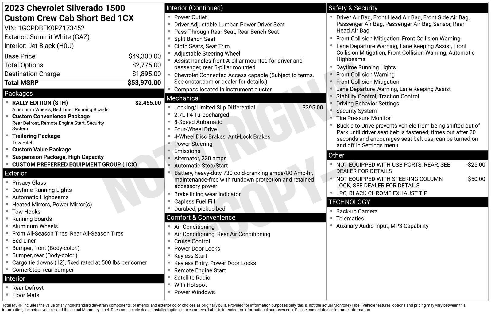 The Manufacturer's Suggested Retail Price excludes tax, title, license, dealer fees and optional equipment. Dealer sets final price.