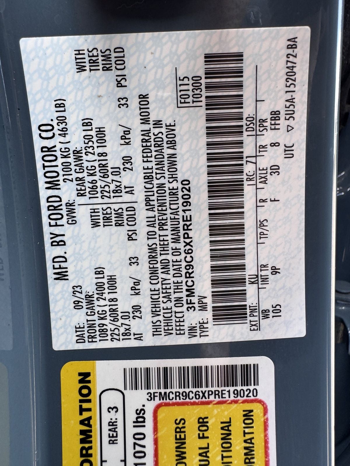 - Vehicle Name: Ford Bronco Sport