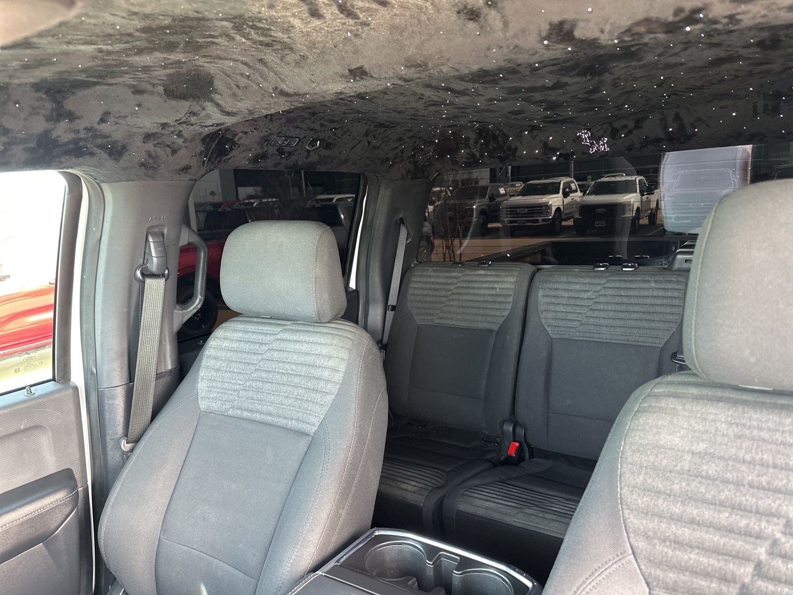 The interior of this F-150 XL is designed for both comfort and functionality. The sport cloth 40/20/40 front seats provide excellent support, while the flow-through center console and steering column-mounted shift lever offer a refined, modern feel. The color-coordinated carpeting and floor mats complete the well-appointed cabin, making this truck as pleasant to drive as it is capable.