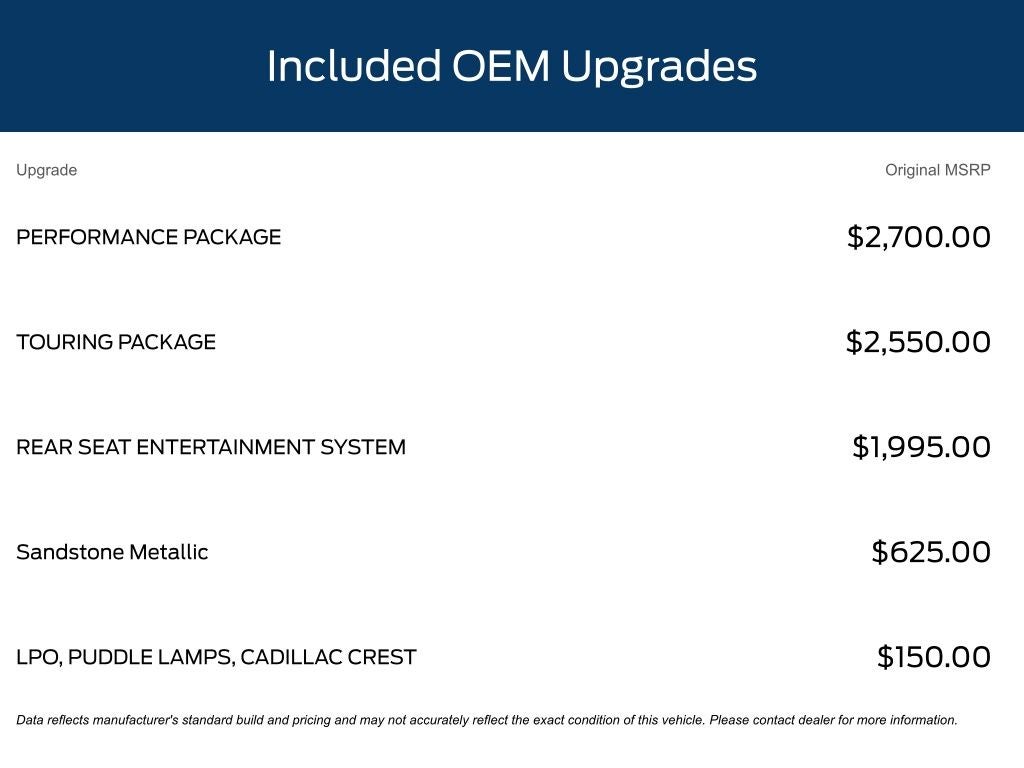 • Performance Package: Includes Trailer Side Blind Zone Alert, electronic limited-slip differential, integrated trailer brake controller, Magnetic Ride Control, Hitch Guidance with Hitch View, and Smart Trailer Integration Indicator