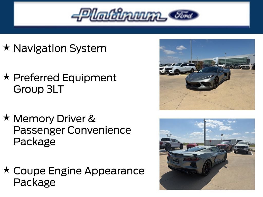 The Coupe Engine Appearance Package and Stealth Interior Trim Package add a touch of sophistication and style, making this Corvette a true head-turner. With its striking Gray exterior and a host of premium features, this Stingray 3LT is a testament to Chevrolet's commitment to delivering an exceptional driving experience.