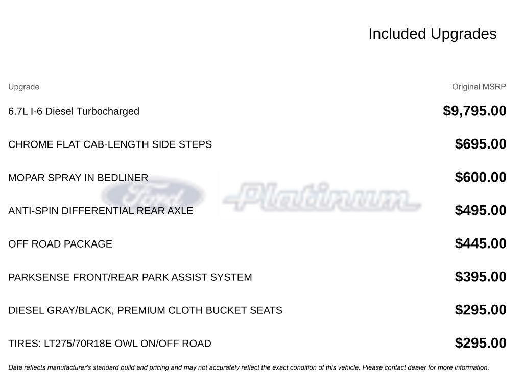 - Cummins 6.7L I6 Turbodiesel engine