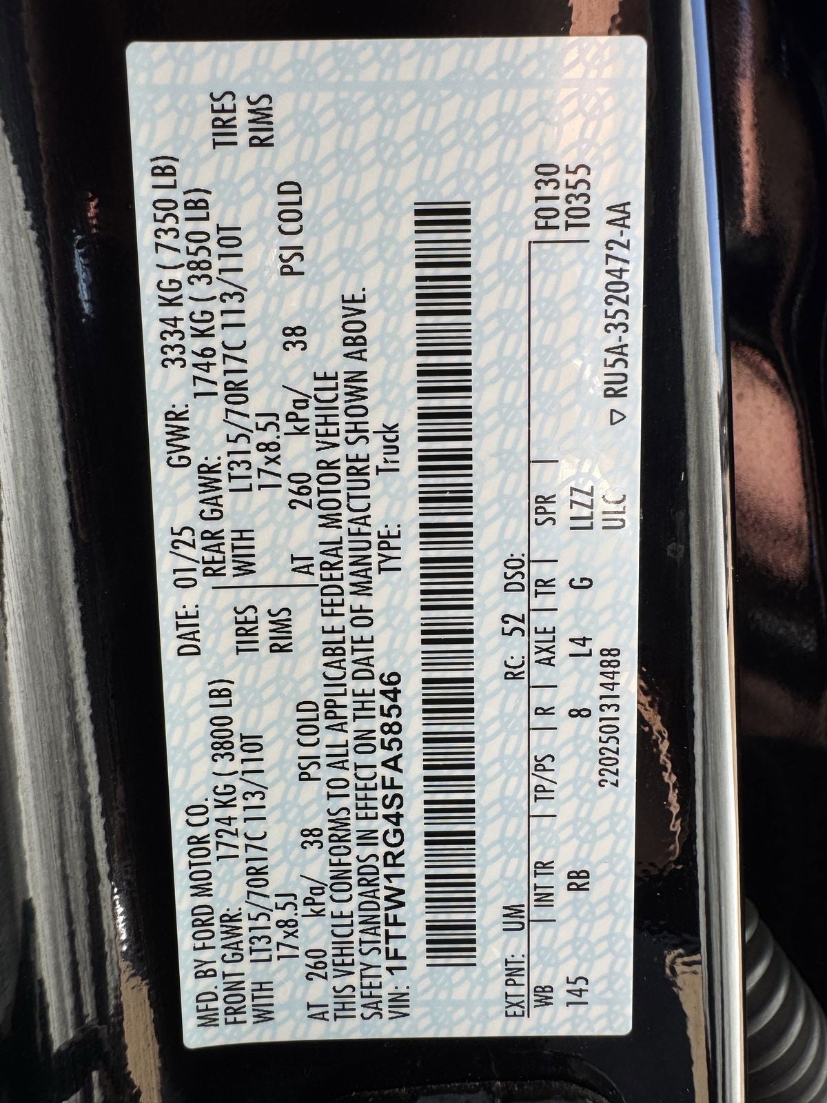 - Gross Axle Wt Rating - Front (lbs): 3800
